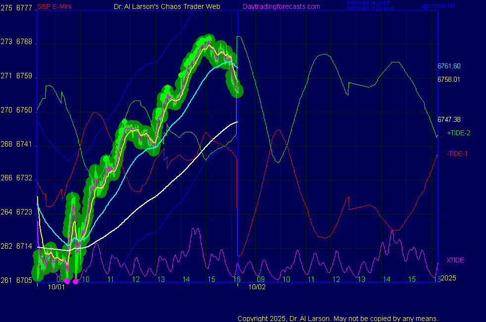 ![]() ![]() Today: per chart 3 on the SPKISS page 10:20 passed-440, 220 flat-trading both sides 11:57 passed-440, 220 flat-trading both sides Tomorrow: Moon conjoin Pluto, square Mercury, square Chiron, oppose Jupiter in a Grand Cross **************************************************************************** during these volatile times, the point values in these instructions should multiplied by 5 ***************************************************************************** For trade times before 11:00, be sure to use EXMA's that include data from 8:15 Eastern Normal Rules ( as published on daytrading forecasts.com in the tutorial): These fit a Trend or Trend continuation scenario, identified by prices trading within a couple of points of the 110 minute EXMA, taking profits on a 12 point range. 1. Watch for the opportunity to go with the trend or change in trend at the time(s) given. Be alert for the turn coming early or late. Be patient and use the tracking indicators. Plan to trade in the direction of the 110 EXMA coming out of that time frame. Prices should stay on one side of the 110 EXMA and it should be moving, or curl up or down from a flat position. Prices should be within about 2 points of the 110 EXMA. The 20 minute EXMA should have crossed the 110 EXMA, or moved toward it and then pulled away from it. When this setup is clear, enter in the direction of the 110 EXMA with a 3 point stop. *** in volatile markets this may need to be 6 points If each setup is not clear 60 minutes after the given time, skip the trade. 2. Move the stop 1 point each 30 minutes. If the market moves decently, trail it by 3 points ( 6 points in volatile markets). 3. Cover on a 5 point gain**, 90 minutes after entry , at the next Tide turn , or if the prices clearly recross the 110 minute EXMA. ********************************************************************** **FAST MOVE RULE If the trade gains 3 points within 30 minutes of entry, press the stop, using the 20 EXMA as a guide to move the stop to the low or high of each pullback (normally about 15 minutes long) once the move makes a new high or low. Cover any gain of 9* points. *It is OK to use the fast stop rule if a trade starts fast, but to then cover at +5 or +4 if it slows or stalls *** Stall rule: Cover any trade that stalls for more than 45 minutes *** Carry through rule If you are in a trade that is working well, if is OK to carry through the next Tide turn *** GO BIG rule: if morning is a big move (>12 points ), and midday is a congestion or pullback, and the last trade of the day sets up near 2:00, a move greater than 9 points may be captured using the technique illustrated at http://moneytide.com/hans/cc09092008.asp *** VOLATILE MARKET RULE -use with discretion in volatile markets, the 55 minute EXMA used in place of the 110 minute EXMA may provide an earlier and lower risk entry. This is most useful when the market is extremely oversold or overbought and reversing, or during a fast move with minimal dips and one is looking to join the move. |
