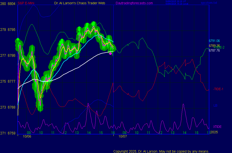 ![]() ![]() Today: per chart 3 on the SPKISS page 10:49 440, 220, 110 up; bought 6781 stopped for +13 12:18 440, 220, 110 down; sold 6787, stopped 6769 for +18 14:29 passed Tomorrow: Moon oppose Sun **************************************************************************** during these volatile times, the point values in these instructions should multiplied by 5 ***************************************************************************** For trade times before 11:00, be sure to use EXMA's that include data from 8:15 Eastern Normal Rules ( as published on daytrading forecasts.com in the tutorial): These fit a Trend or Trend continuation scenario, identified by prices trading within a couple of points of the 110 minute EXMA, taking profits on a 12 point range. 1. Watch for the opportunity to go with the trend or change in trend at the time(s) given. Be alert for the turn coming early or late. Be patient and use the tracking indicators. Plan to trade in the direction of the 110 EXMA coming out of that time frame. Prices should stay on one side of the 110 EXMA and it should be moving, or curl up or down from a flat position. Prices should be within about 2 points of the 110 EXMA. The 20 minute EXMA should have crossed the 110 EXMA, or moved toward it and then pulled away from it. When this setup is clear, enter in the direction of the 110 EXMA with a 3 point stop. *** in volatile markets this may need to be 6 points If each setup is not clear 60 minutes after the given time, skip the trade. 2. Move the stop 1 point each 30 minutes. If the market moves decently, trail it by 3 points ( 6 points in volatile markets). 3. Cover on a 5 point gain**, 90 minutes after entry , at the next Tide turn , or if the prices clearly recross the 110 minute EXMA. ********************************************************************** **FAST MOVE RULE If the trade gains 3 points within 30 minutes of entry, press the stop, using the 20 EXMA as a guide to move the stop to the low or high of each pullback (normally about 15 minutes long) once the move makes a new high or low. Cover any gain of 9* points. *It is OK to use the fast stop rule if a trade starts fast, but to then cover at +5 or +4 if it slows or stalls *** Stall rule: Cover any trade that stalls for more than 45 minutes *** Carry through rule If you are in a trade that is working well, if is OK to carry through the next Tide turn *** GO BIG rule: if morning is a big move (>12 points ), and midday is a congestion or pullback, and the last trade of the day sets up near 2:00, a move greater than 9 points may be captured using the technique illustrated at http://moneytide.com/hans/cc09092008.asp *** VOLATILE MARKET RULE -use with discretion in volatile markets, the 55 minute EXMA used in place of the 110 minute EXMA may provide an earlier and lower risk entry. This is most useful when the market is extremely oversold or overbought and reversing, or during a fast move with minimal dips and one is looking to join the move. |