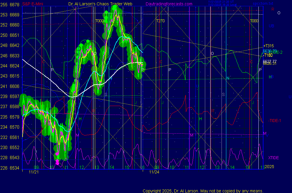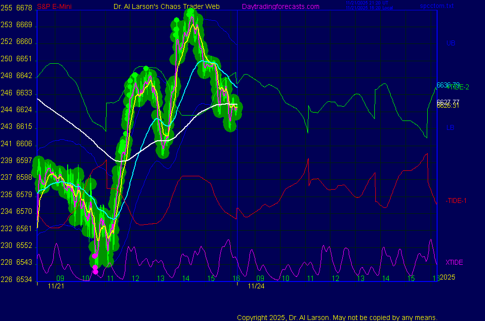 Today: as per chart 3 on SPKISS page 09:45 market was way up, due to NVIDIA news, so waited for EXMAs to roll over -sold 6732 then trailed stop on 220 carried through 12:35 and 14:00 covered on close 6555 for +177 note the 3 vertical lines on the Secret charts and lower left corner chart on the Pro1K and Pro4K pages **************************************************************************** during these volatile times, the point values in these instructions should multiplied by 5 ***************************************************************************** For trade times before 11:00, be sure to use EXMA's that include data from 8:15 Eastern Normal Rules ( as published on daytrading forecasts.com in the tutorial): These fit a Trend or Trend continuation scenario, identified by prices trading within a couple of points of the 110 minute EXMA, taking profits on a 12 point range. 1. Watch for the opportunity to go with the trend or change in trend at the time(s) given. Be alert for the turn coming early or late. Be patient and use the tracking indicators. Plan to trade in the direction of the 110 EXMA coming out of that time frame. Prices should stay on one side of the 110 EXMA and it should be moving, or curl up or down from a flat position. Prices should be within about 2 points of the 110 EXMA. The 20 minute EXMA should have crossed the 110 EXMA, or moved toward it and then pulled away from it. When this setup is clear, enter in the direction of the 110 EXMA with a 3 point stop. *** in volatile markets this may need to be 6 points If each setup is not clear 60 minutes after the given time, skip the trade. 2. Move the stop 1 point each 30 minutes. If the market moves decently, trail it by 3 points ( 6 points in volatile markets). 3. Cover on a 5 point gain**, 90 minutes after entry , at the next Tide turn , or if the prices clearly recross the 110 minute EXMA. ********************************************************************** **FAST MOVE RULE If the trade gains 3 points within 30 minutes of entry, press the stop, using the 20 EXMA as a guide to move the stop to the low or high of each pullback (normally about 15 minutes long) once the move makes a new high or low. Cover any gain of 9* points. *It is OK to use the fast stop rule if a trade starts fast, but to then cover at +5 or +4 if it slows or stalls *** Stall rule: Cover any trade that stalls for more than 45 minutes *** Carry through rule If you are in a trade that is working well, if is OK to carry through the next Tide turn *** GO BIG rule: if morning is a big move (>12 points ), and midday is a congestion or pullback, and the last trade of the day sets up near 2:00, a move greater than 9 points may be captured using the technique illustrated at http://moneytide.com/hans/cc09092008.asp *** VOLATILE MARKET RULE -use with discretion in volatile markets, the 55 minute EXMA used in place of the 110 minute EXMA may provide an earlier and lower risk entry. This is most useful when the market is extremely oversold or overbought and reversing, or during a fast move with minimal dips and one is looking to join the move. |